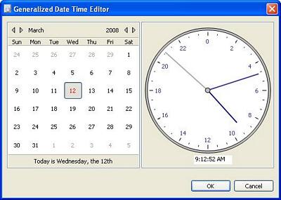 Generalized Time Editor is the default for the generalized time attribute. When you click the open dialog button the generalized time editor will parse and display the time in the field, if the field is empty if will display the current time. When you are done making the change click OK and the value will be save to directory provided you have the change directory permission.